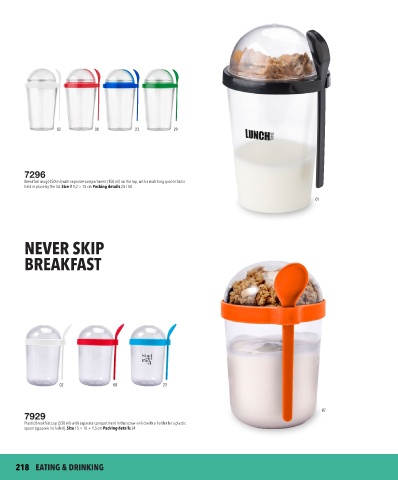 Plastic breakfast cup (530 ml) with separate compartment in the screw-on lid with a holder for a plastic