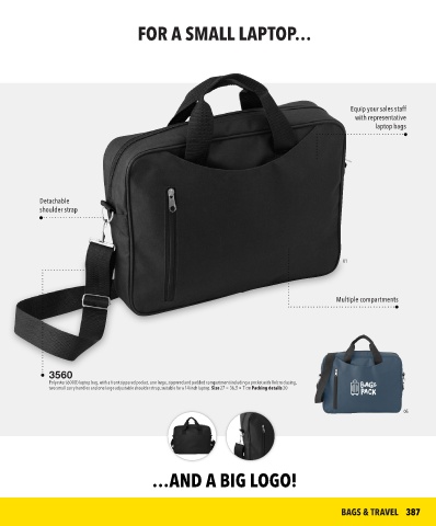 two small carry handles and one large adjustable shoulder strap, suitable for a 14 inch laptop. Size 27 × 36,5 × 7 cm Packing details 20