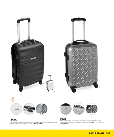 5393 PC/ABS matt silver trolley with four spinner wheels, metal extendable handle, black zipper,