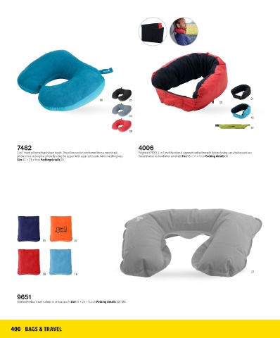 Inflatable velour travel cushion in velour pouch. Size 41 × 25 × 0,2 cm Packing details 30 / 120