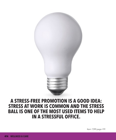 8 A STRESS-FREE PROMOTION IS A GOOD IDEA: STRESS AT WORK IS COMMON AND THE STRESS BALL IS ONE OF THE MOST USED ITEMS TO HELP IN A STRESSFUL OFFICE. Item 7249 page 419 414 WELLNESS & CARE 415