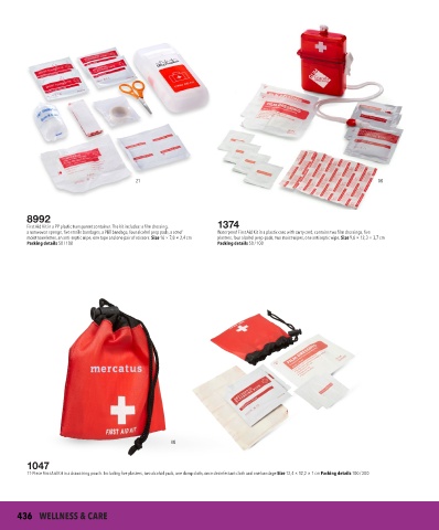First Aid Kit in a PP plastic transparent container. The kit includes: a film dressing, 1374