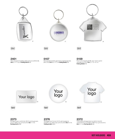 Plastic transparent key holder, plain stock & unassembled only. Round, plastic key holder, paper inserts supplied separately Plastic T-shirt shaped key holder, paper inserts supplied