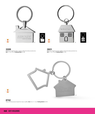 Two part zinc alloy keychain shaped like a house, in giftbox. Size 3,4 × 3,7 × 0,3 cm Packing details 50 / 250