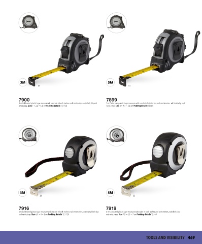 3 m Calibrated plastic tape measure with a scale in both inches and centimetres, with metal belt clip 5 m Calibrated plastic tape measure with scale in both inches and centimetres, with belt clip