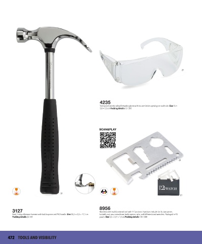 Steel, Friday afternoon hammer with bottle opener and PVC handle. Size 25,5 × 3,5 × 11,1 cm butterfly nut, saw, screwdriver, bottle opener, ruler, and different sized wrenches. Packaged in PU