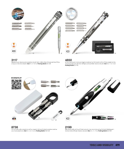 cross-head screwdrivers). Size 9,2 × 2,2 × 1,3 cm Packing details 100 / 500 level and a blue LED light. Batteries included. Size 2,5 × 2 × 14 cm Packing details 50 / 200