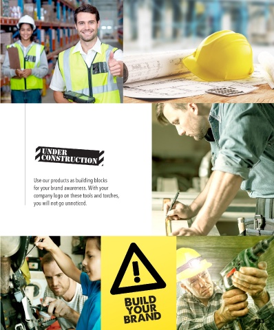 Under Construction 5. 4. 2. Use our products as building blocks for your brand awareness. With your company logo on these tools and torches, you will not go unnoticed. 1. 3. ! Build your brand 482 483