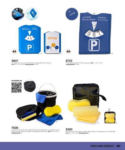 Parking disc and ice scraper with three plastic shopping trolley coins in the back. Plastic parking disc with four different languages. Size 10 × 12,5 × 0,2 cm