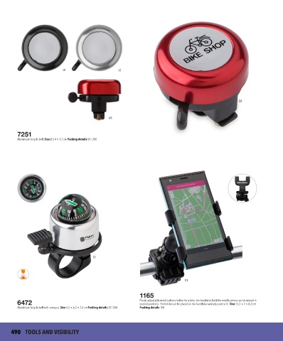 Aluminium bicycle bell with compass. Size 4,5 × 6,2 × 7,4 cm Packing details 20 / 200 Packing details 100