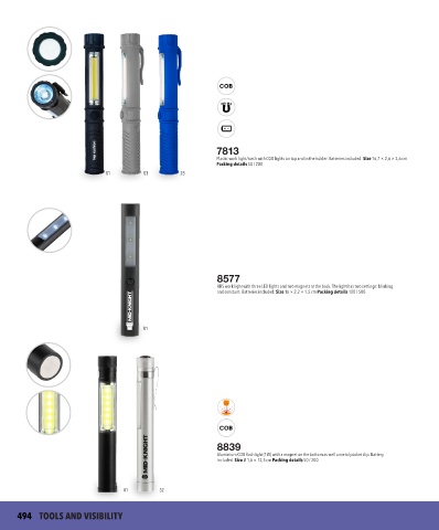 Plastic work light/torch with COB lights on top and in the holder. Batteries included. Size 16,7 × 2,6 × 2,6 cm