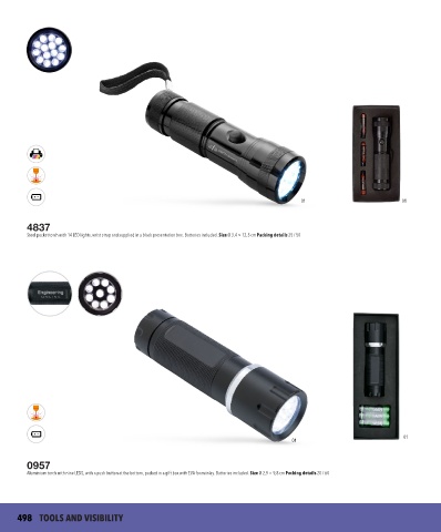 Steel pocket torch with 14 LED lights, wrist strap and supplied in a black presentation box. Batteries included. Size Ø 3,4 × 12,5 cm Packing details 25 / 50