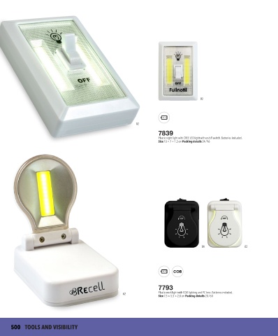Plastic work light with COB lighting and PC lens. Batteries included.