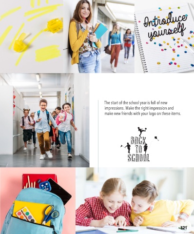 Introduce yourself 3. 4. 5. The start of the school year is full of new impressions. Make the right impression and make new friends with your logo on these items. 2. 1. 521