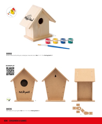 Wooden birdhouse with painting set, including four colours and a brush. Size 14 × 8 × 14 cm Packing details 24