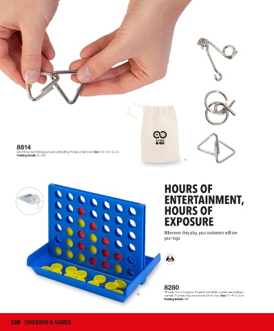 PP plastic 4-in-a-line game. The game is foldable. Includes two polybags;