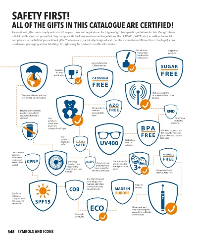 compliance in the field of promotional gifts. The icons are graphically designed and therefore sometimes different from the (legal) icons