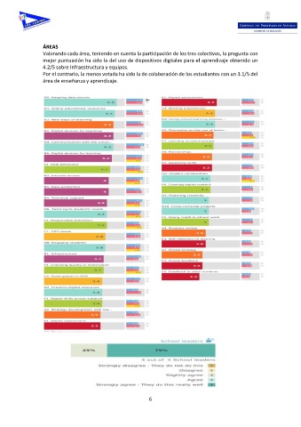 Valorando cada área, teniendo en cuenta la participación de los tres colectivos, la pregunta con