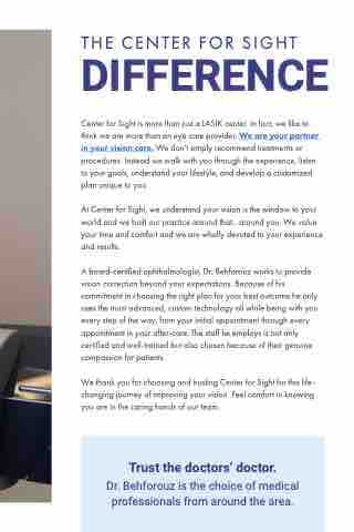 We thank you for choosing and trusting Center for Sight for this life- changing journey of improving your vision. Feel comfort in knowing you are in the caring hands of our team.