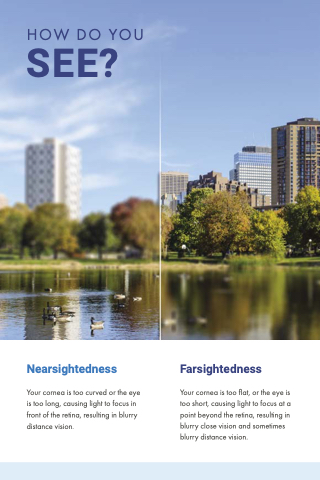 Your cornea is too flat, or the eye is too short, causing light to focus at a point beyond the retina, resulting in blurry close vision and sometimes blurry distance vision.