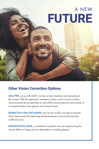 MONOVISION LASIK, is available for patients who are experiencing the natural effects of aging and are dependent on reading glasses.
