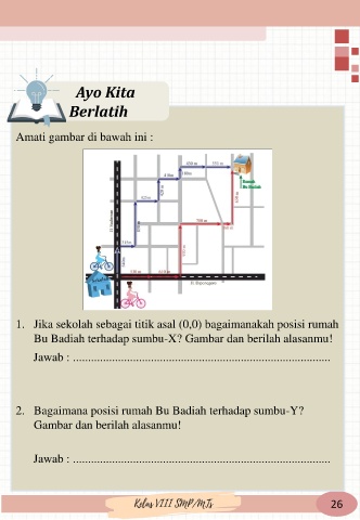 2. Bagaimana posisi rumah Bu Badiah terhadap sumbu-Y?