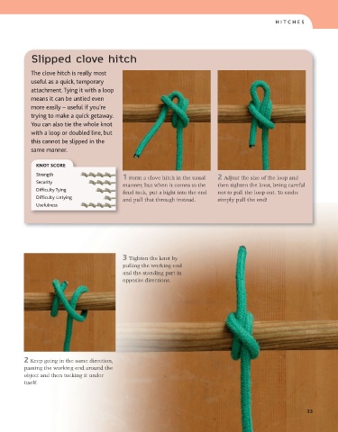 1 Form a clove hitch in the usual 2 Adjust the size of the loop and