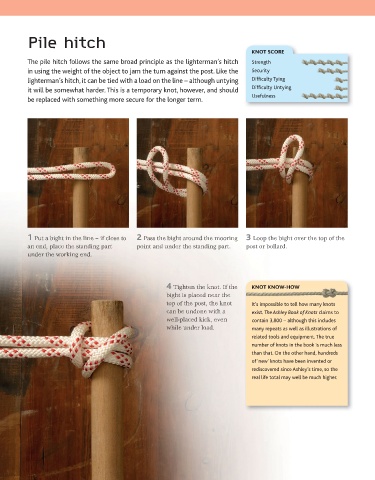 lighterman’s hitch, it can be tied with a load on the line – although untying Diffi culty Tying