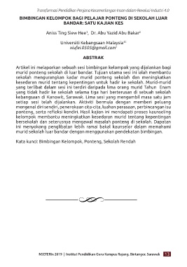 Kata kunci: Bimbingan Kelompok, Ponteng, Sekolah Rendah