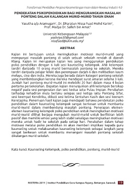 Kata kunci: Kaunseling Kelompok, psiko pendidikan, ponteng, murid-murid
