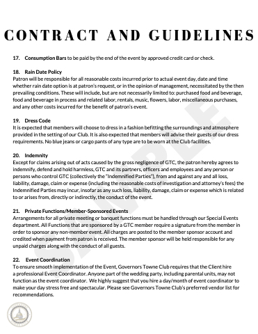 To ensure smooth implementation of the Event, Governors Towne Club requires that the Client hire