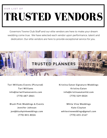 Tori Williams Events (Pictured) Tori Williams info@toriwilliamsevents.com (770) 687-2861