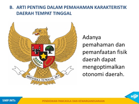 B. ARTI PENTING DALAM PEMAHAMAN KARAKTERISTIK DAERAH TEMPAT TINGGAL Adanya pemahaman dan pemanfaatan fisik daerah dapat mengoptimalkan otonomi daerah. PENDIDIKAN PANCASILA DAN KEWARGANEGARAAN