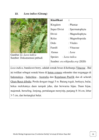 Modul Biologi Angiospermae (Tumbuhan Berbiji Tertutup) di Kebun Raya Bali 19