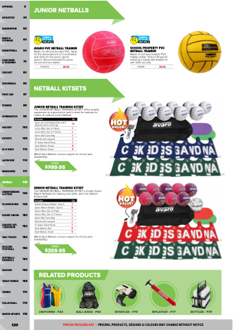 UNIFORMS - P23 BALL BAGS - P60 WHISTLES - P74 INFLATION - P77 BOTTLES - P79