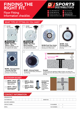 Floor Fitting Information checklist.