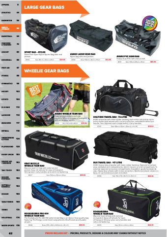 pocket. Easy roll wheels for ease of transport. Strong nylon carry handles and velcro lid fastening.
