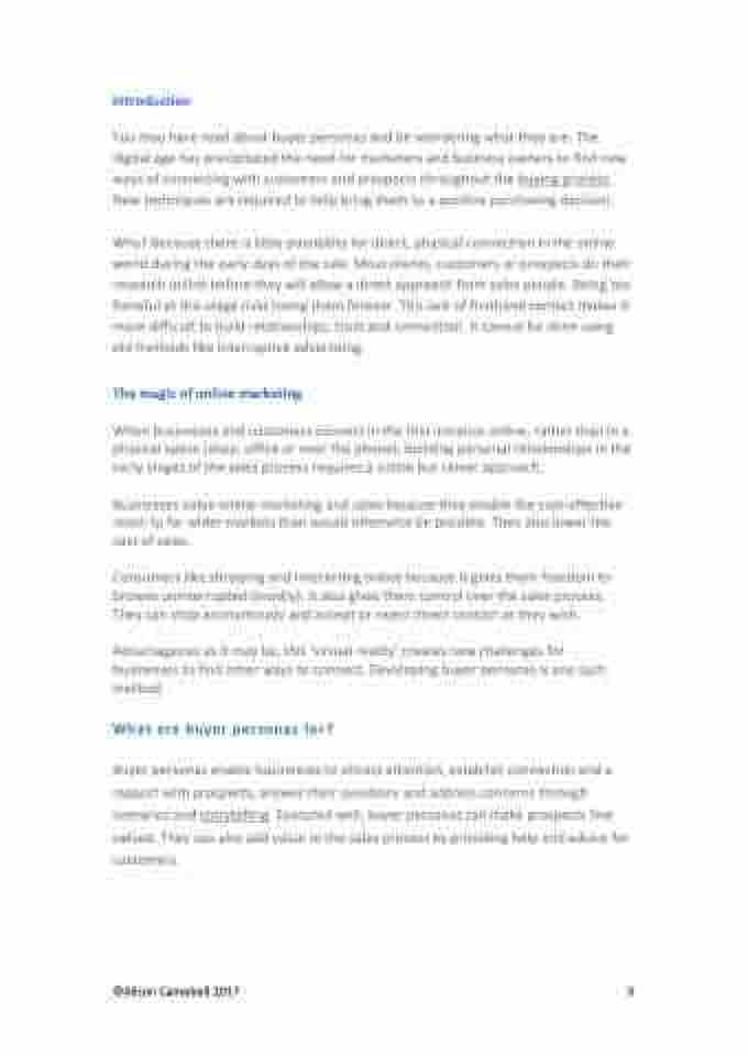 rapport with prospects, answer their questions and address concerns through scenarios and storytelling. Executed well, buyer personas can make prospects feel valued. They can also add value to the sales process by providing help and advice for customers.