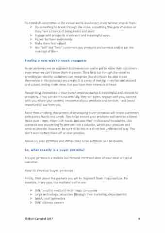 More than anything, the process of developing buyer personas will reveal customers pain points, wants and needs. This helps ensure your products and services address those pain points, meet their needs and ease their professional headaches. Use scenarios and storytelling to demonstrate a solution, which your products and services provide. However, be sure to do this in a direct but understated way. You don’t want to turn them off or over promise.