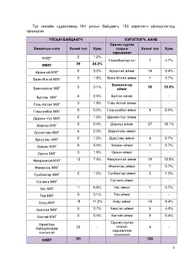 Баянхонгор МХГ 5 3.1% аймаг 35 23.5%