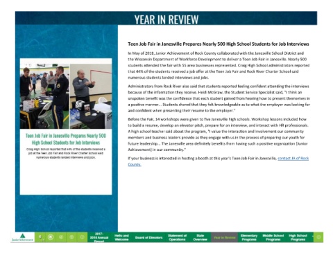 In May of 2018, Junior Achievement of Rock County collaborated with the Janesville School District and