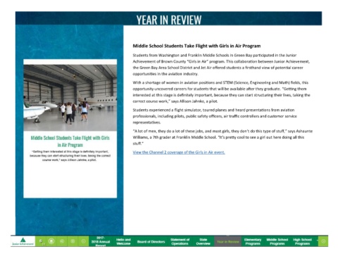 Achievement of Brown County “Girls in Air” program. This collaboration between Junior Achievement,