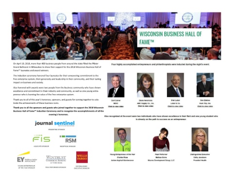 Grand Ballroom in Milwaukee to show their support for the 2018 Wisconsin Business Hall of