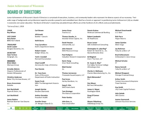 Junior Achievement of Wisconsin's Board of Directors is comprised of executives, business, and community leaders who represent the diverse aspects of our economy. Their