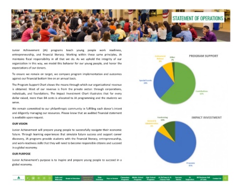 dollar raised, more than 84 cents is allocated to JA programming and the students we
