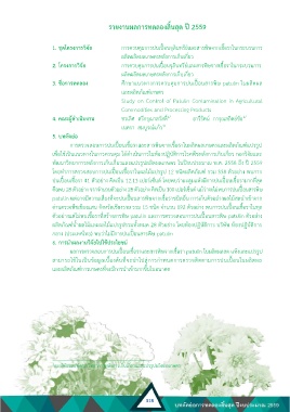 2. โครงการวิจัย การควบคุมการปนเปื้อนจุลินทรีย์และสารพิษจากเชื้อราในกระบวนการ