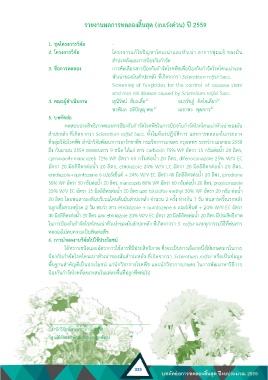 ถึง กันยายน 2559 ทดสอบสาร 9 ชนิด ได้แก่ สาร carboxin 75% WP อัตรา 15 กรัมต่อน้ า 20 ลิตร,