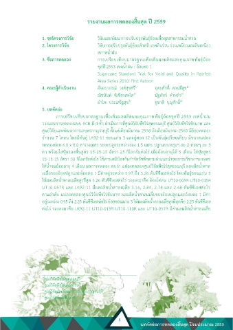 2. โครงการวิจัย             วิจัยการปรับปรุงพันธุ์อ้อยส าหรับเขตดินร่วน ร่วนเหนียวและดินเหนียว
