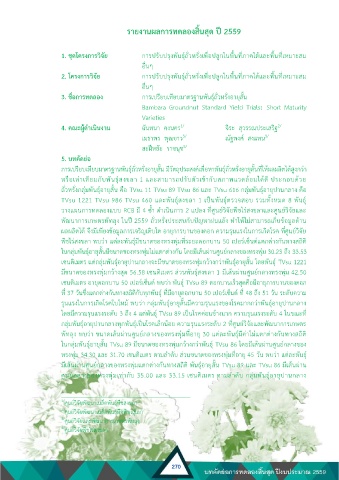 TVsu 1221 TVsu 986 TVsu 460 และพันธุ์สงขลา 1 เป็นพันธุ์ตรวจสอบ รวมทั้งหมด 8 พันธุ์