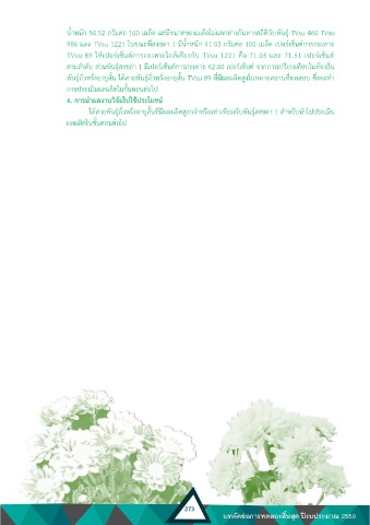 น้ าหนัก 50.52 กรัมต่อ 100 เมล็ด แต่มีขนาดของเมล็ดไม่แตกต่างกันทางสถิติกับพันธุ์ TVsu 460 TVsu